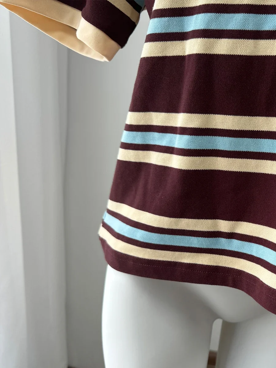 Polo Neck T Shirt Women Soft Chic Tees 95% Cotton Jumper Clothes Loose Casual Pullover 2025 Summer New Crop Tops364